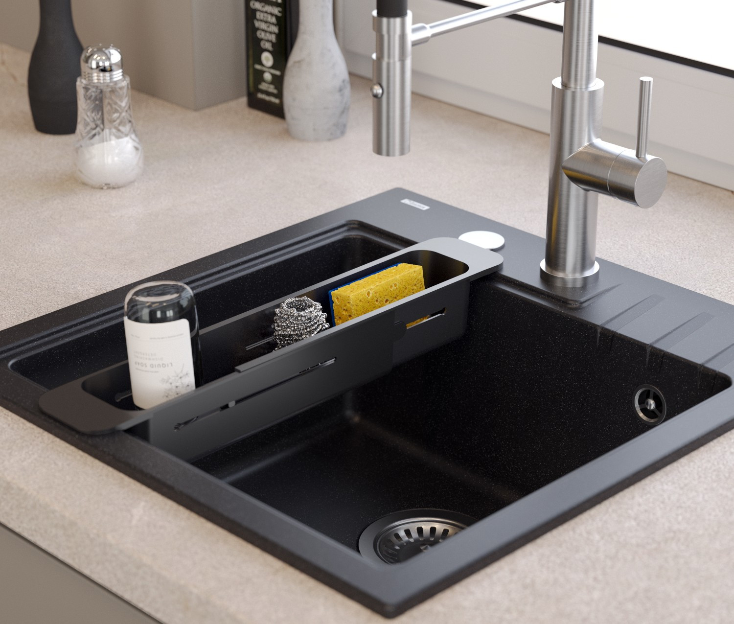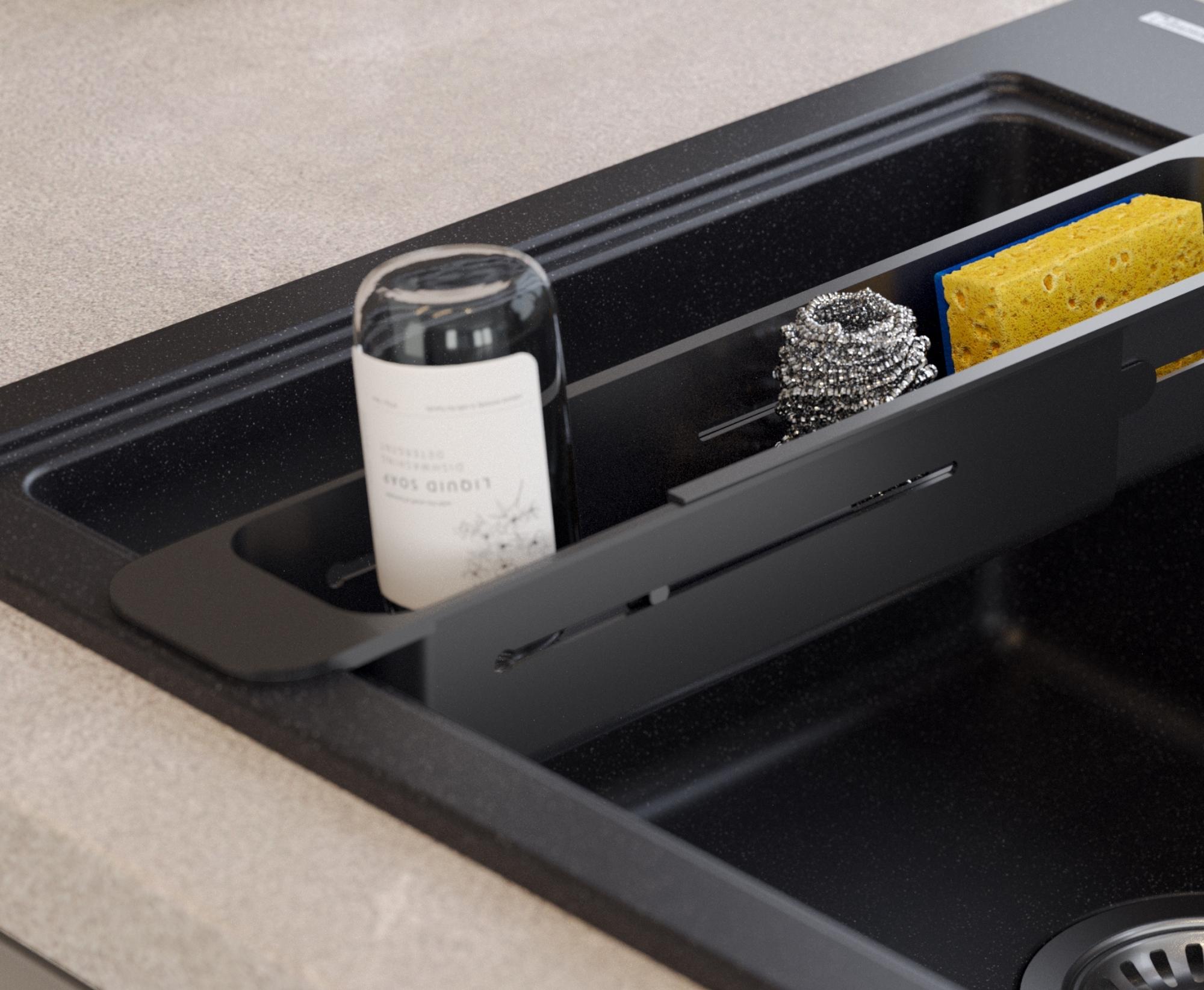 Wkładka wykonana z tworzywa sztucznego w kolorze czarnym, to idealne uzupełnienie funkcjonalności zlewu kuchennego. Dzięki rozsuwanym elementom, produkt można dopasować do rozmiarów komory, w której spełni dodatkową rolę odkładczą na produkty spożywcze.