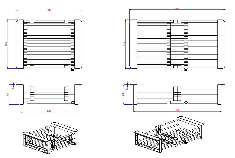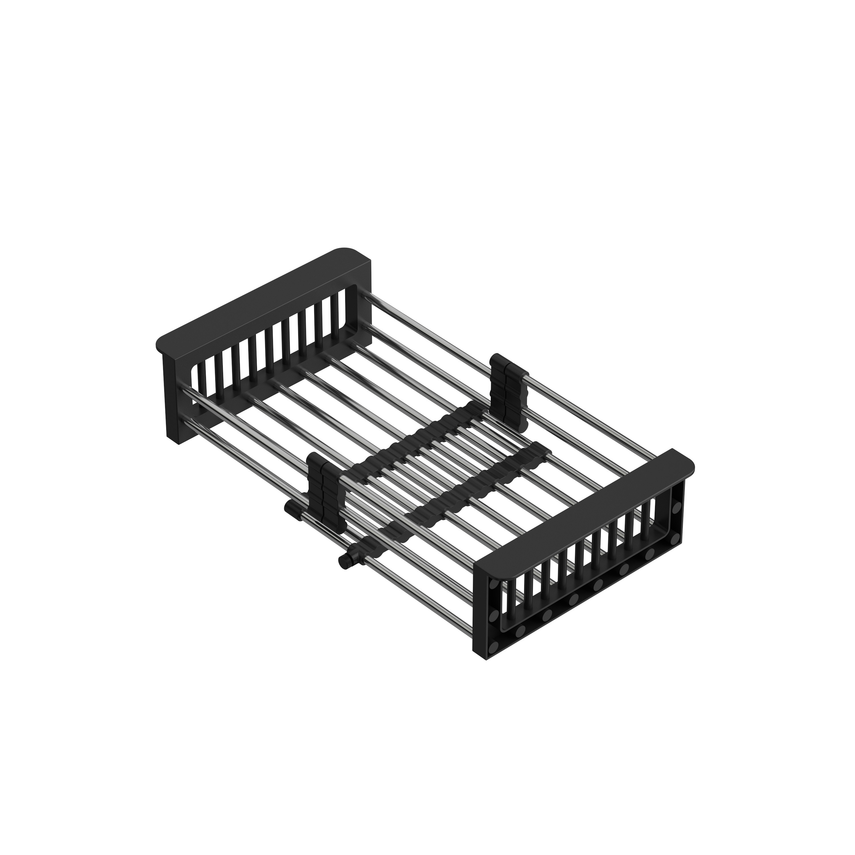 Koszyk do zlewozmywaka regulowany – stalowy, uchwyty czarne (regulowana szerokość 300-440 x 215 mm)