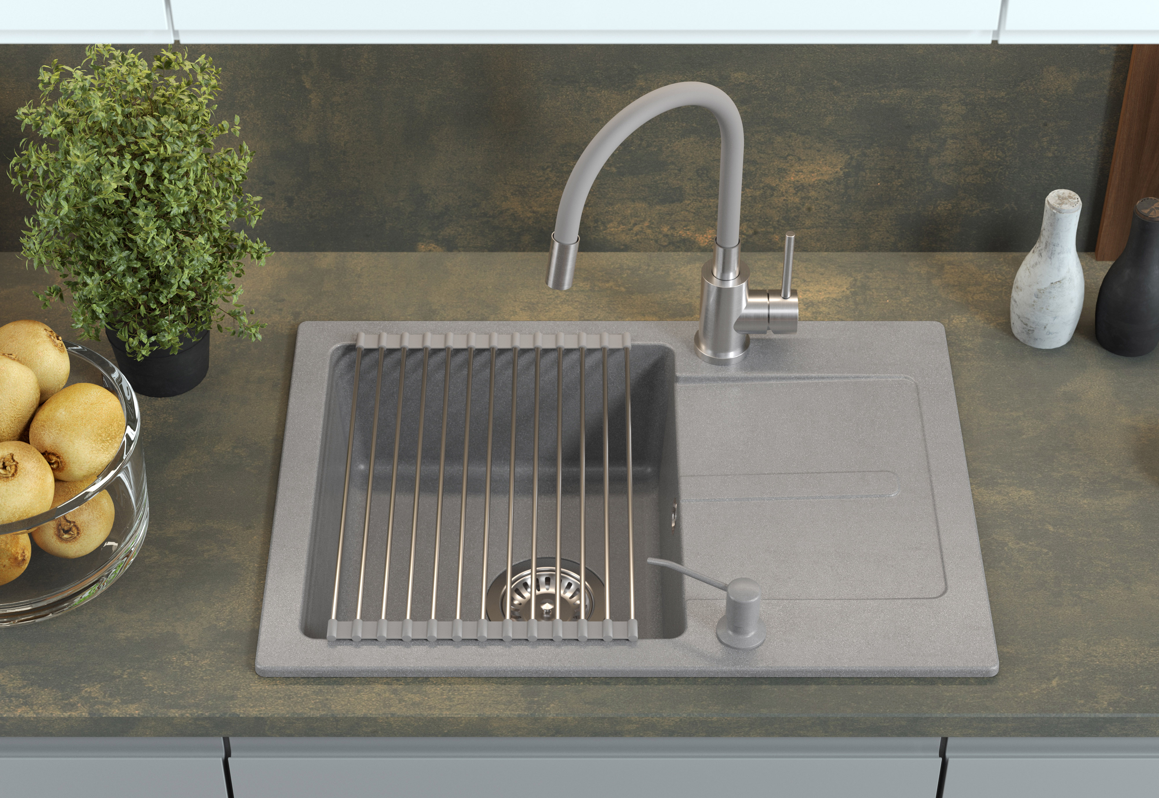 Dopasowanie kolorystyczne do zlewów i akcesoriów Quadron umożliwia stworzenie spójnej aranżacji kuchennej. System montażu QFix zapewnia szybki i stabilny montaż baterii bez użycia dodatkowych narzędzi. MAGGIE szara to praktyczne, trwałe i estetyczne rozwiązanie dla każdej kuchni.