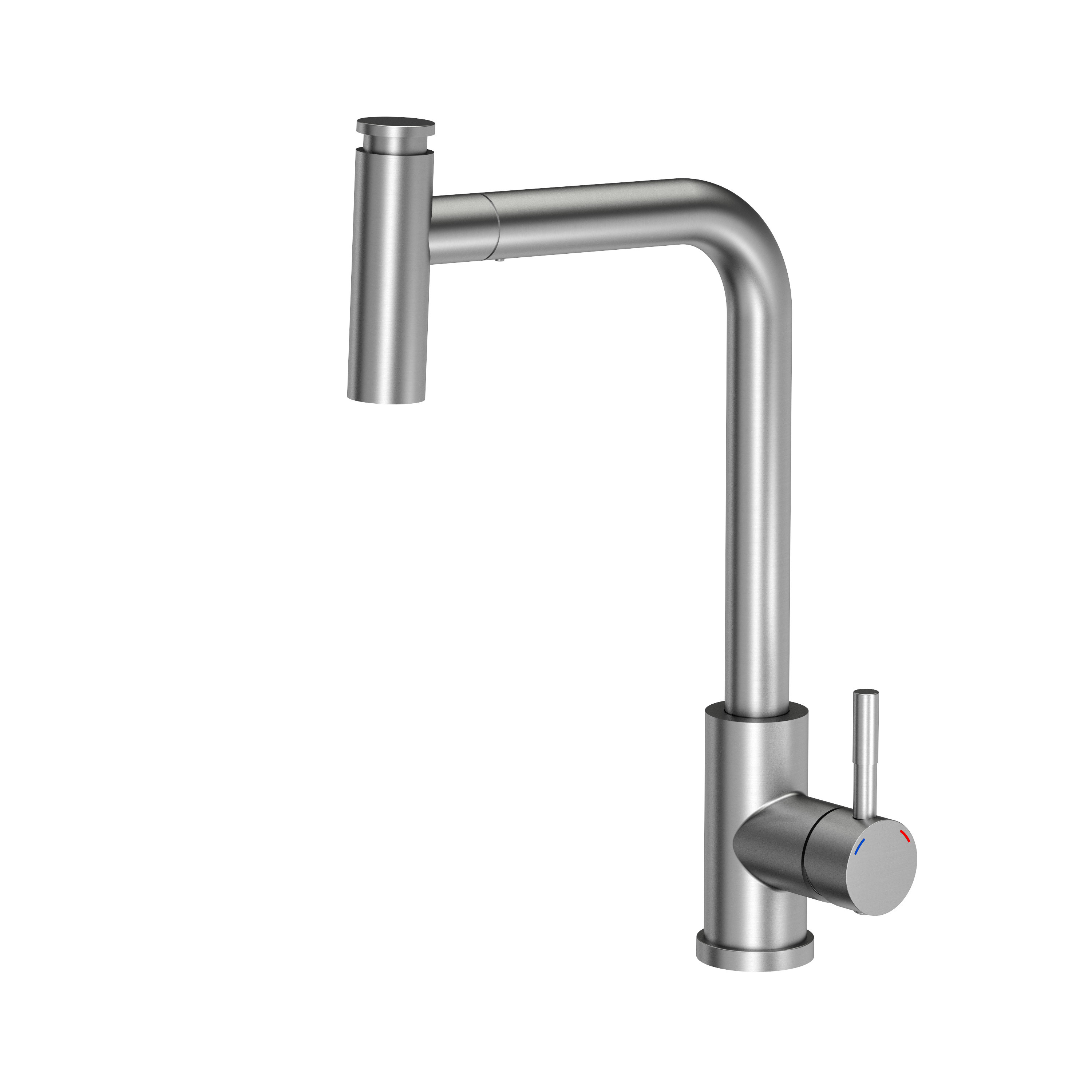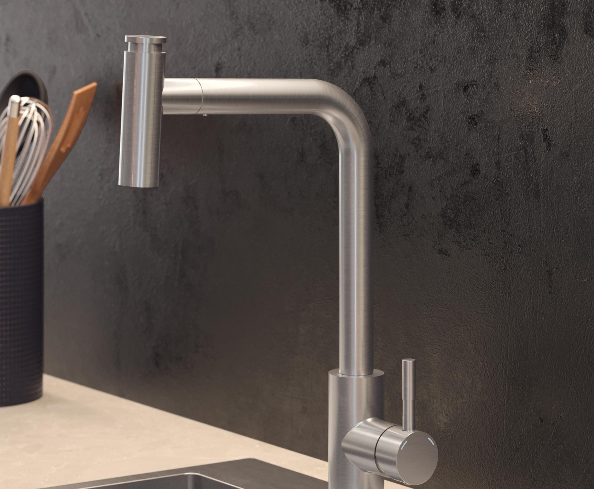 Bateria kuchenna MERYL – stalowa, stal szlachetna, obrotowa, wyciągana wylewka, z prysznicem, Quadron
