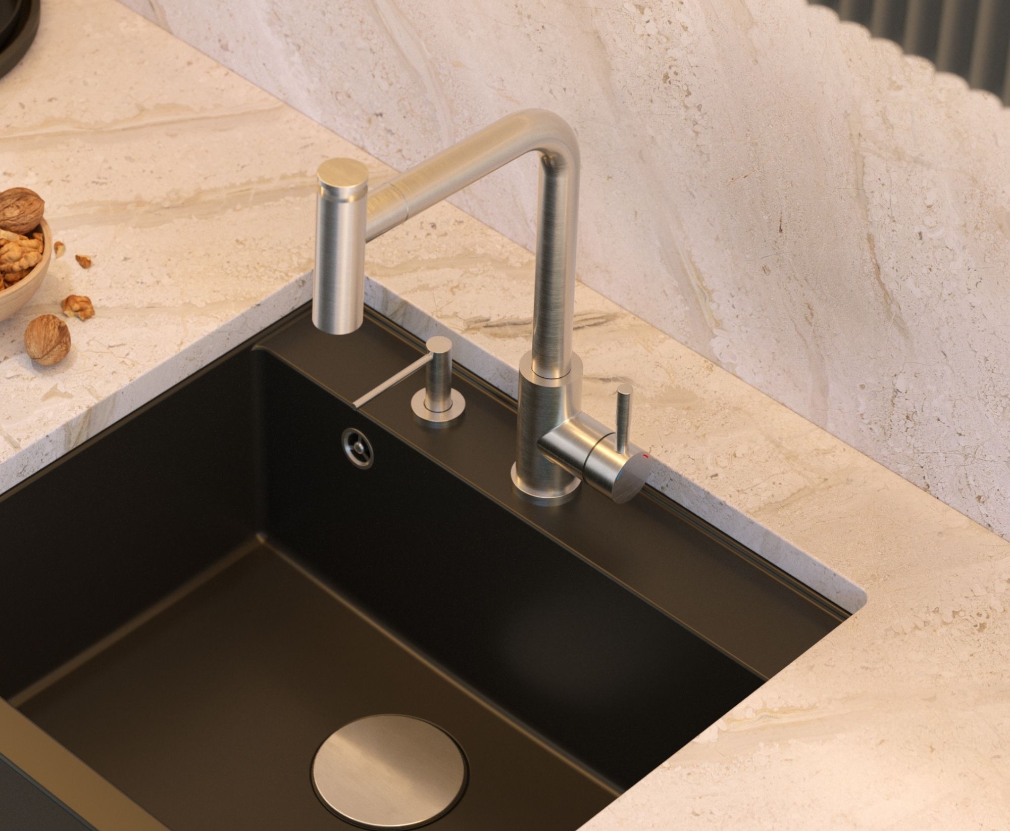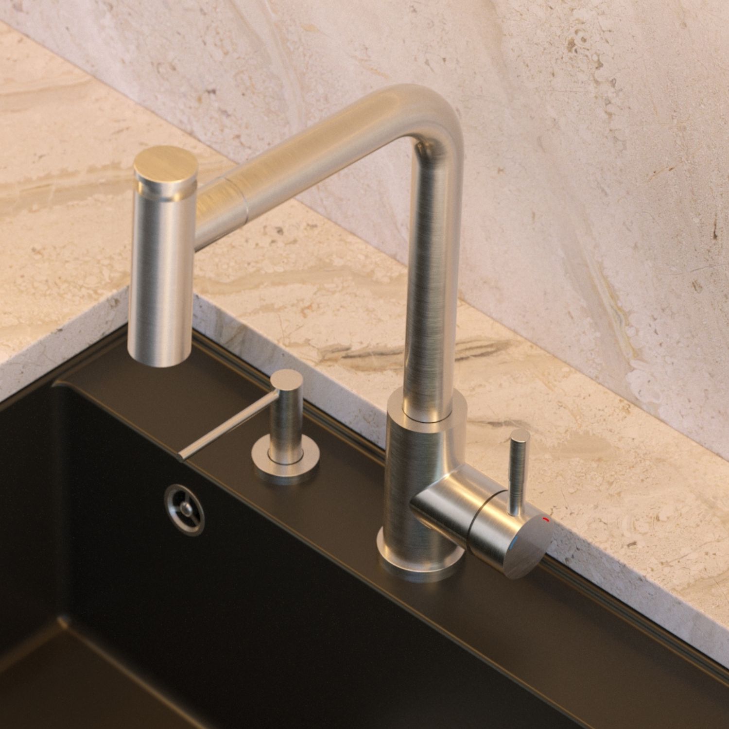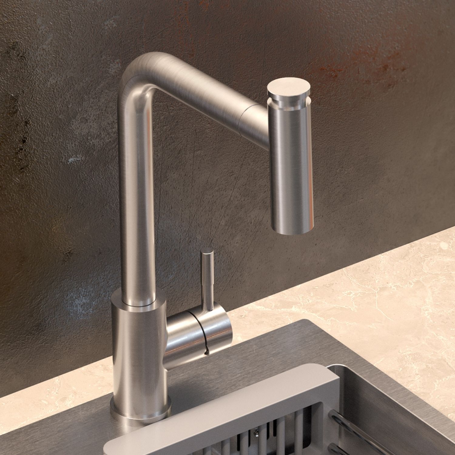 Bateria kuchenna MERYL w wykończeniu stal szczotkowana to propozycja dla osób ceniących nowoczesny design, praktyczność i trwałość. Elegancka forma baterii idealnie wpisuje się w aranżacje zarówno nowoczesne, jak i klasyczne, podkreślając charakter kuchni. Wyciągana wylewka z funkcją prysznica pozwala na pełną kontrolę nad strumieniem wody w komorach zlewozmywaka i poza nimi, ułatwiając mycie naczyń, warzyw i owoców. Obrotowa wylewka 360° zapewnia swobodę ruchu i możliwość komfortowego wykorzystania całego obszaru roboczego wokół zlewu.