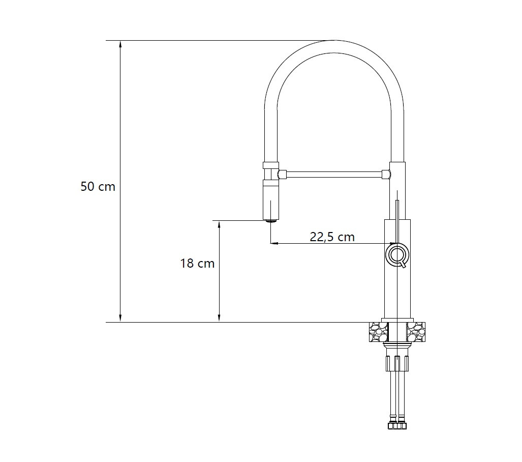 Dwustopniowa głowica zapewnia cichą i precyzyjną pracę przez lata. Elastyczny, czarny wąż pozwala wygodnie skierować strumień w dowolne miejsce, a dodatkowa podpora z magnesem gwarantuje stabilność podczas codziennego użytkowania. Bateria została wyposażona w perlator, który skutecznie napowietrza wodę, redukuje jej zużycie i ogranicza powstawanie osadów z kamienia.