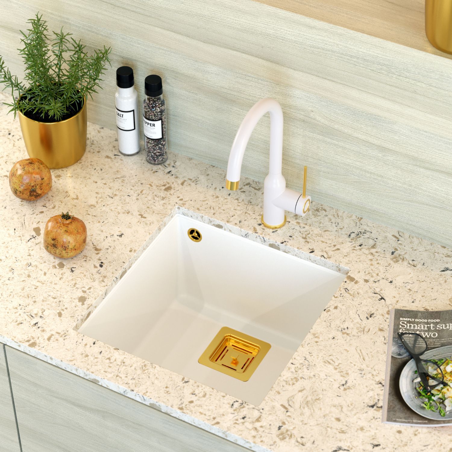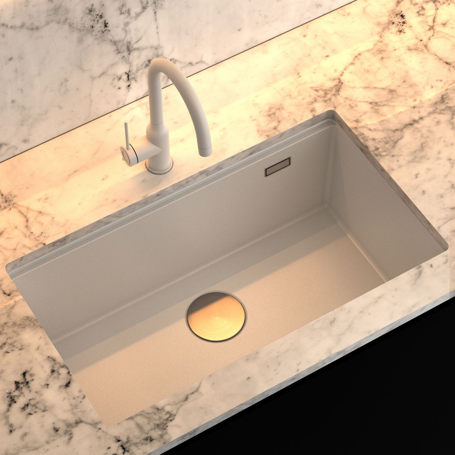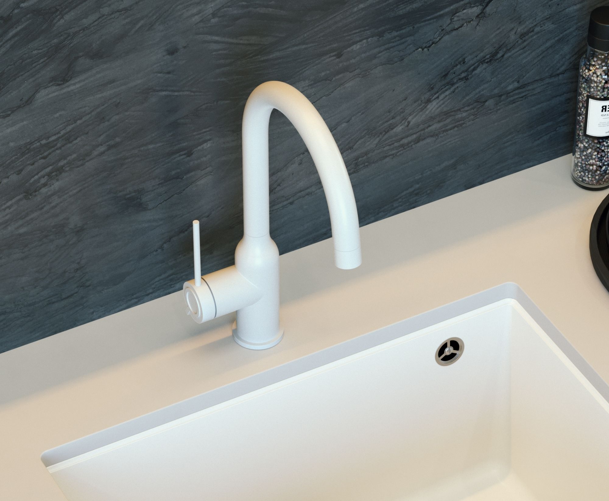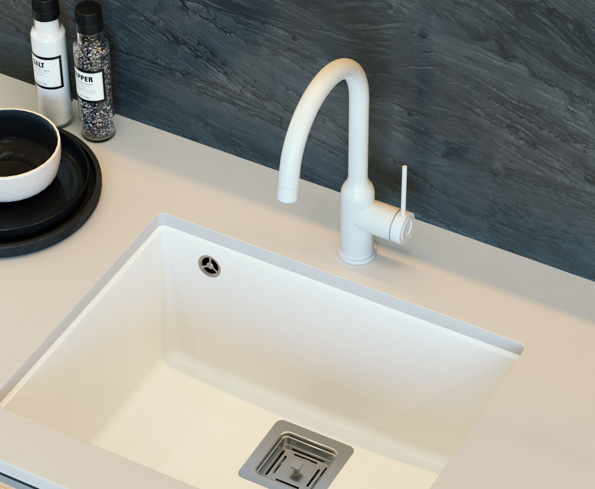 Smukły, stalowy korpus baterii INGRID doskonale komponuje się ze zlewozmywakami i akcesoriami kuchennymi Quadron.