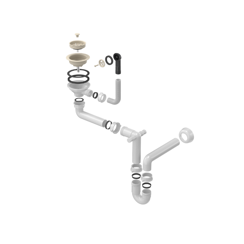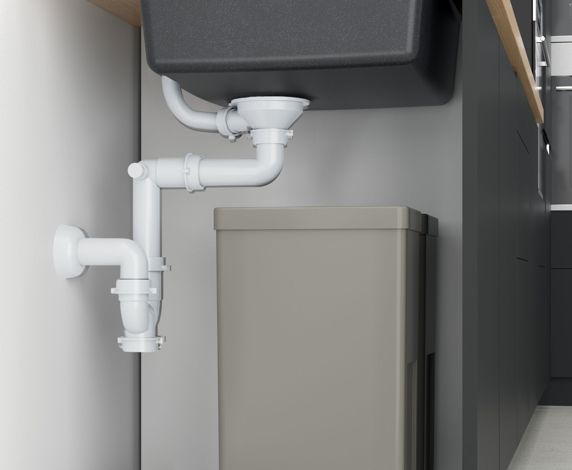 Montaż syfonu jest szybki i intuicyjny – przemyślana konstrukcja save space pozwala na samodzielną instalację bez użycia specjalistycznych narzędzi, a jednocześnie optymalnie wykorzystuje przestrzeń pod zlewem.