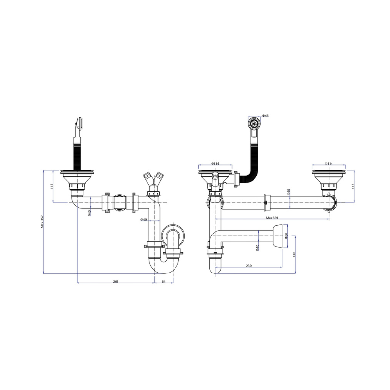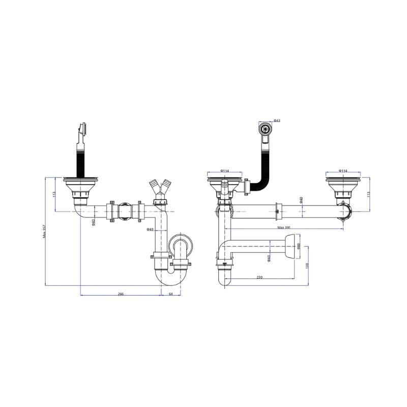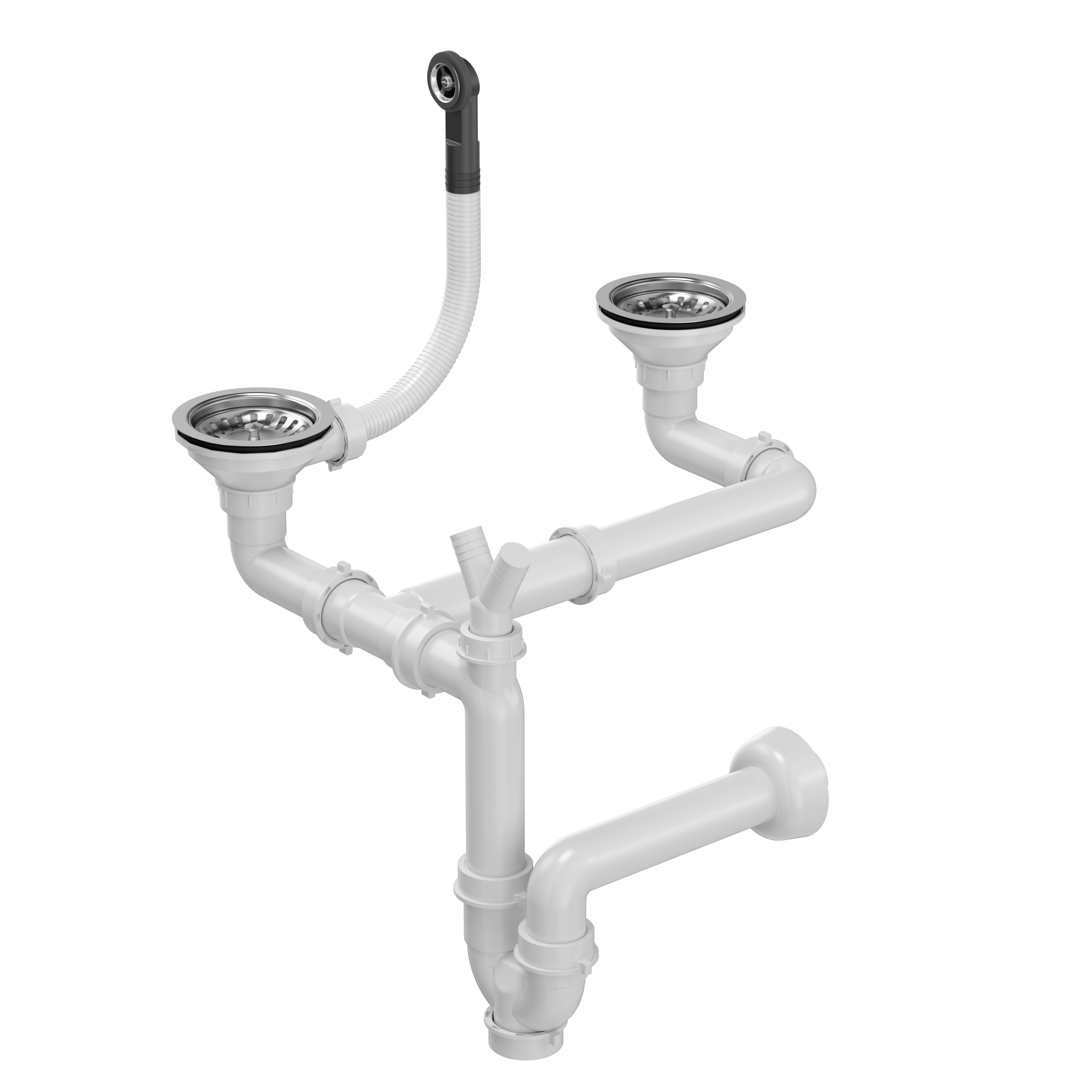 Montaż dwukomorowego odpływu jest szybki i nieskomplikowany – wszystkie elementy zostały precyzyjnie dopasowane, co pozwala na łatwą instalację bez konieczności używania specjalistycznych narzędzi. Konstrukcja syfonu jest kompatybilna z większością zlewozmywaków dwukomorowych, co czyni go rozwiązaniem uniwersalnym.