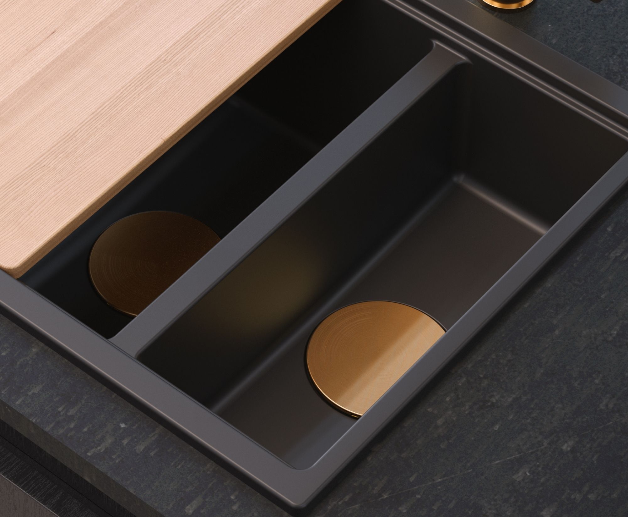 Nakładka pełni podwójną rolę — chroni odpływ oraz stanowi luksusowy akcent dekoracyjny, który wzbogaca wygląd całej kuchni. Ciepły, miedziany kolor w połączeniu z wysoką jakością wykonania podkreśla elegancję i unikatowy styl, czyniąc zlewozmywak nie tylko funkcjonalnym, ale i wyjątkowo efektownym elementem wyposażenia.