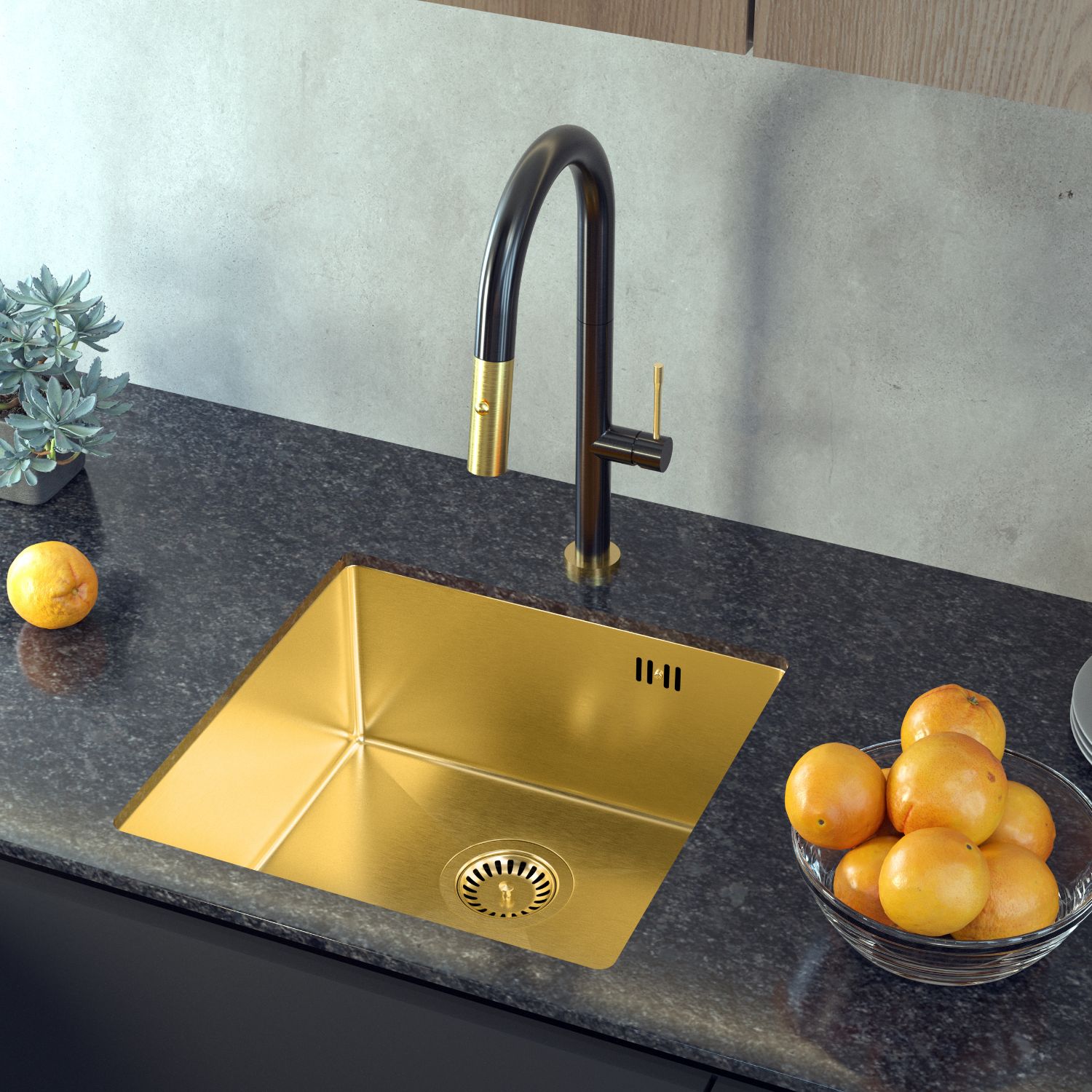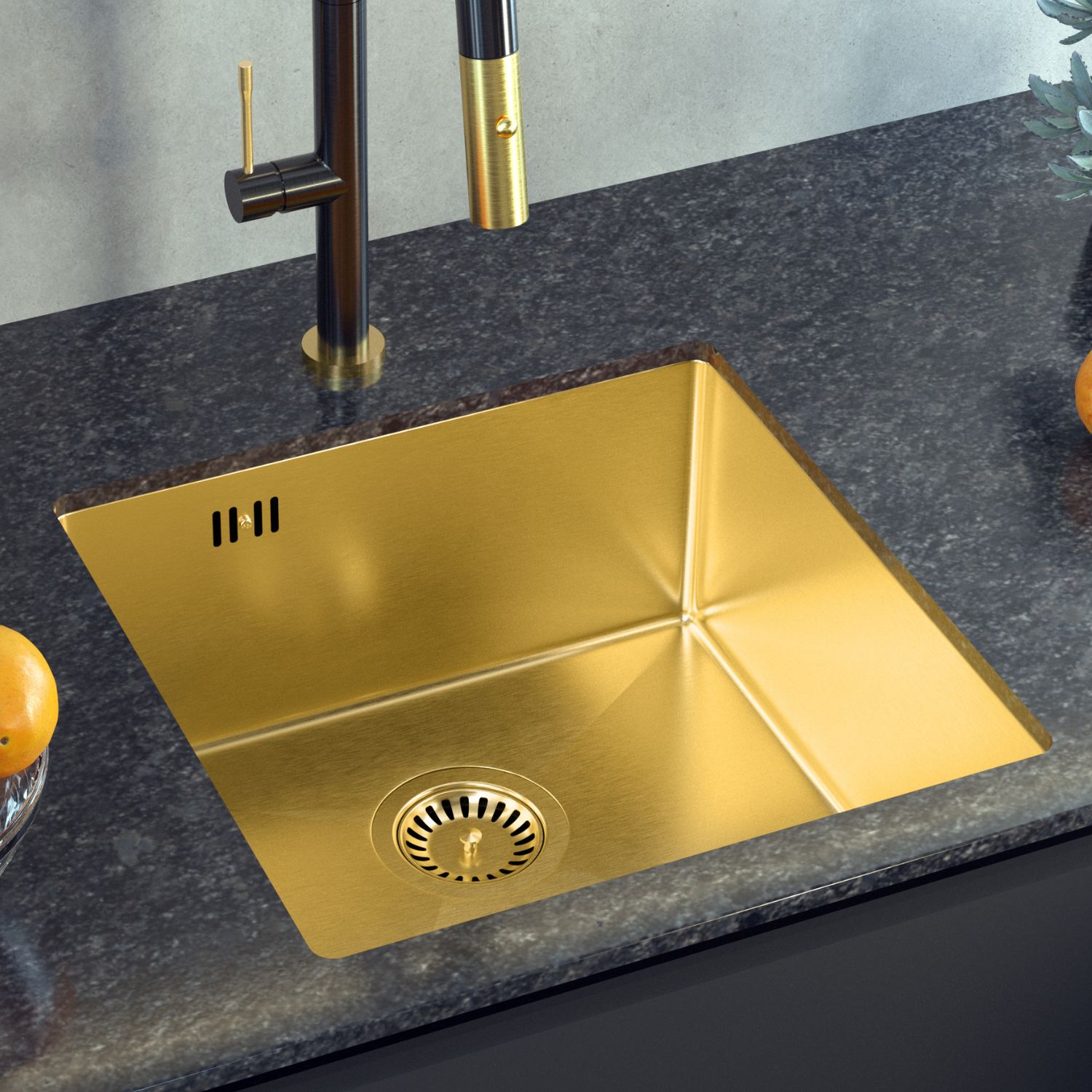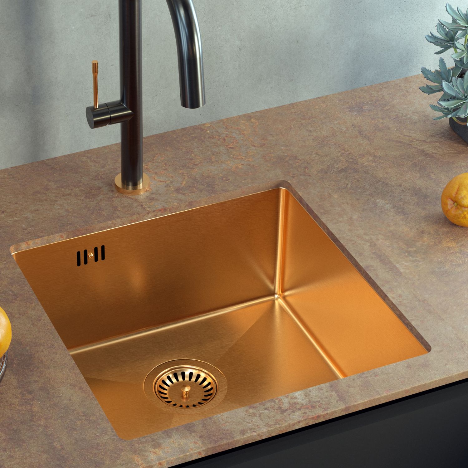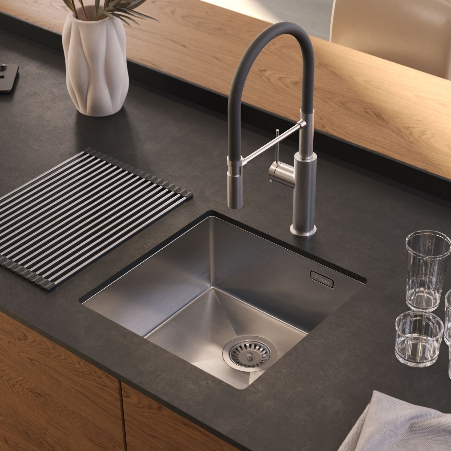 Zlewozmywak stalowy ANTHONY 50 – jednokomorowy, podwieszany/wpuszczany/na równi z blatem, stal szlachetna/elementy stalowe, Quadron