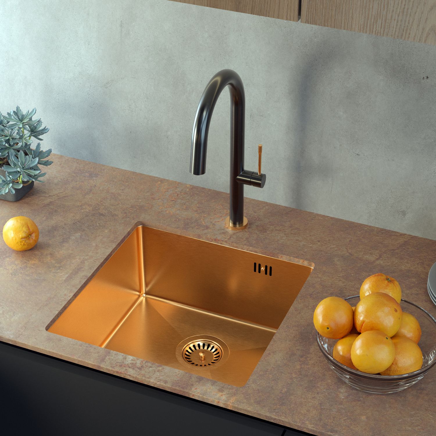 ANTHONY 50 w wykończeniu stal szczotkowana z elementami stalowymi to kompaktowy, ale niezwykle funkcjonalny zlewozmywak kuchenny, idealny do mniejszych przestrzeni, gdzie liczy się praktyka i nowoczesny design.