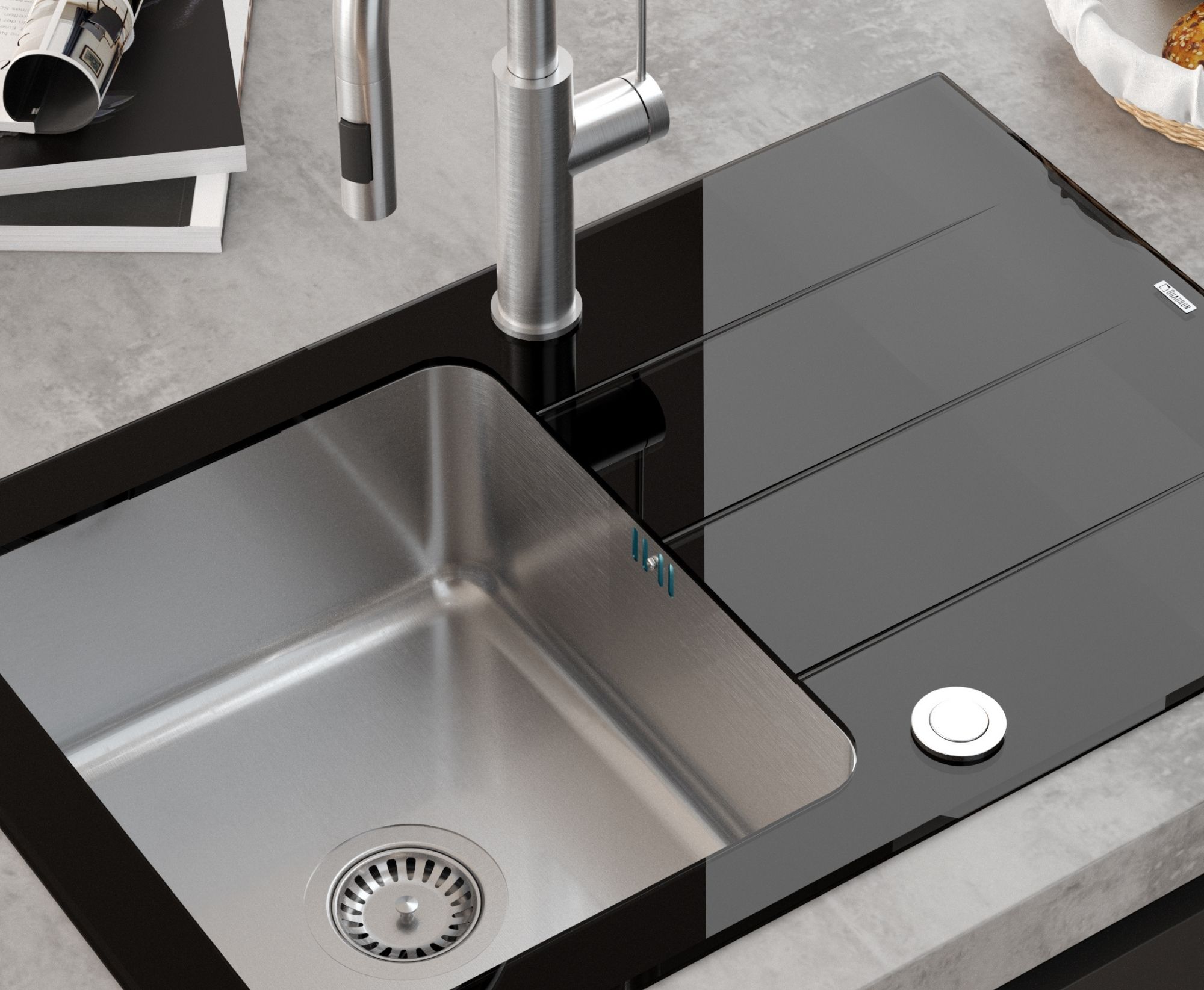 Kompozycja materiałowa FUSION GlassQ łączy stal szlachetną SteelQ z wytrzymałym blatem ze szkła hartowanego GlassQ. Stal jest odporna na korozję, stabilna kolorystycznie i higieniczna, a gładka powierzchnia ogranicza osadzanie się zabrudzeń i bakterii. Szkło hartowane GlassQ charakteryzuje się wysoką odpornością na zarysowania i temperaturę, co czyni zlew trwałym i łatwym w codziennej pielęgnacji.