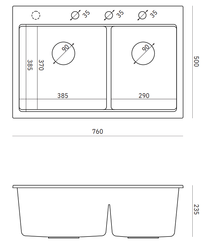 | W komplecie | syfon automatyczny Push-2-Open, dozownik, deska drewniana, wkładka ociekowa |