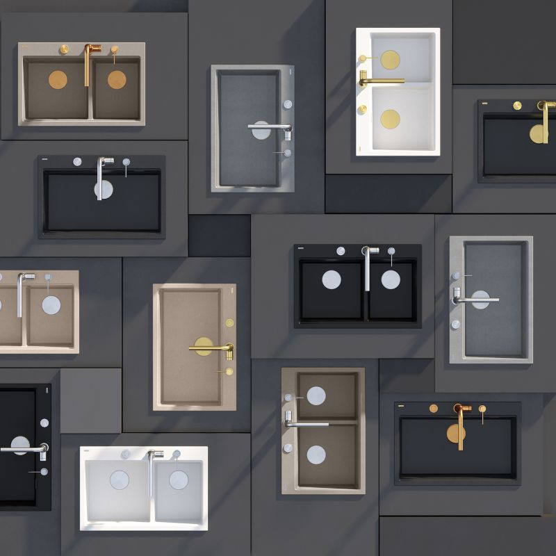 W zestawie ze zlewozmywakiem MARC 120 ze złotymi elementami znajdują się: syfon Push-2-Open, jesionowa deska do krojenia, stalowa wkładka ociekowa, dozownik płynu oraz nakładka na odpływ. Praktyczne akcesoria znacząco ułatwiają pracę w kuchni.