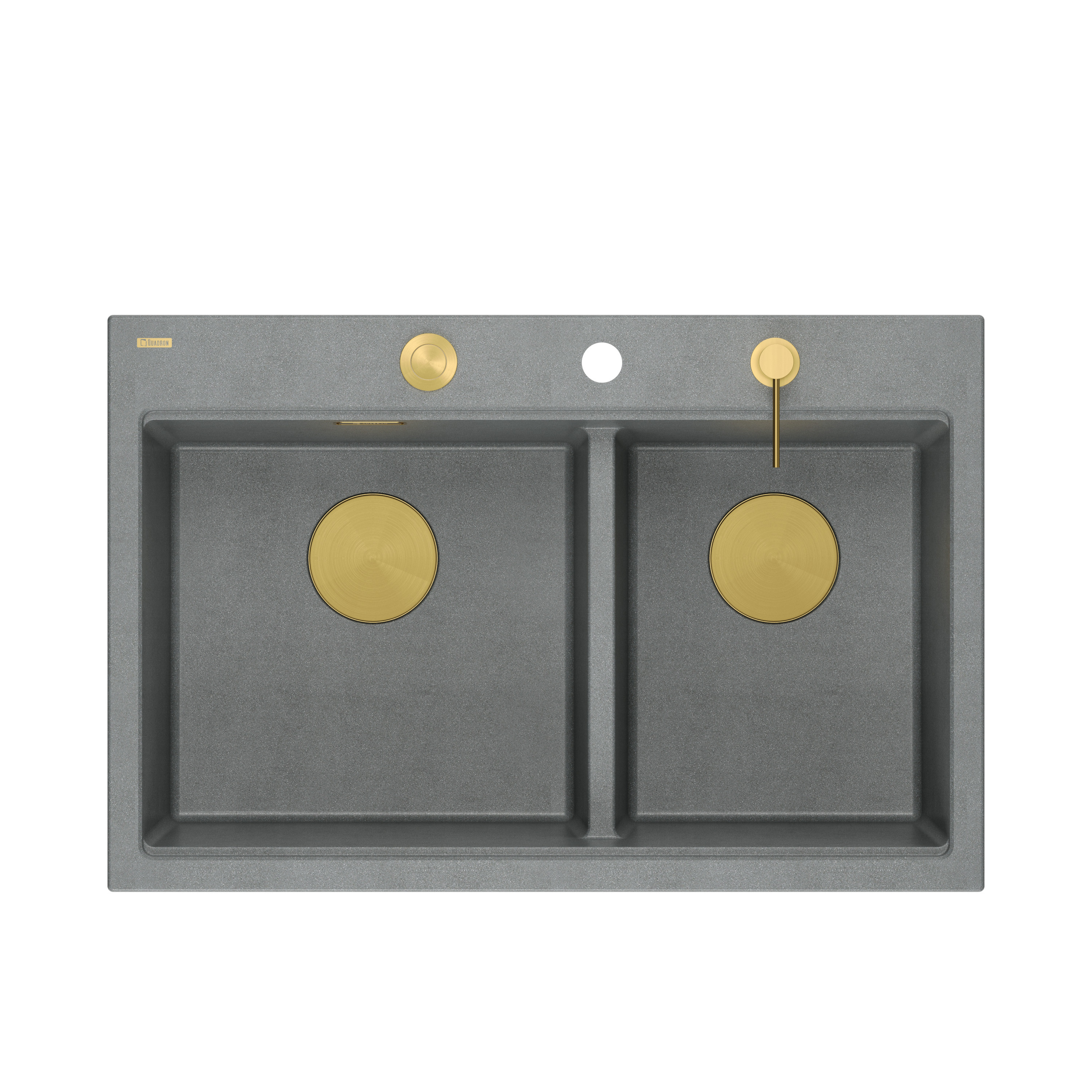 Zlewozmywak granitowy MARC 120 WORKSTATION – dwukomorowy, wpuszczany, silver stone/elementy złote + AKCESORIA, Quadron